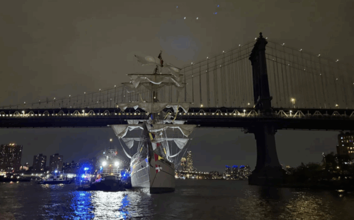 Ciudad de México., a 19 de mayo del 2025.- El buque escuela Cuauhtémoc de la Armada de México sufrió serios daños este sábado al chocar con el puente de Brooklyn en Nueva York durante una maniobra, según informó en un mensaje en X la Secretaría de Marina de México.