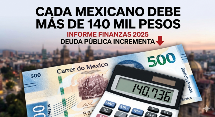 Uno de los datos más alarmantes del reporte revela que el saldo de la deuda pública alcanzó los 18.8 billones de pesos. En términos prácticos, esto significa que cada ciudadano en México —desde recién nacidos hasta adultos mayores— carga con una deuda teórica de 140,736 pesos, lo que representa un incremento real de casi 4 mil pesos respecto al año anterior.