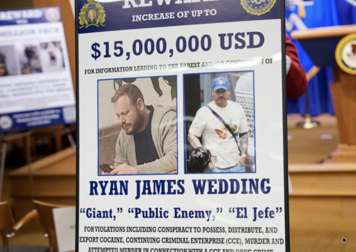 Wedding, quien ha estado oculto en México durante más de una década, era buscado por cargos de tráfico de cocaína y asesinato desde 2024. Se alega que dirigía una operación transnacional de tráfico de drogas, enviando rutinariamente cientos de kilogramos de cocaína desde Colombia, a través de México y el sur de California, hacia Estados Unidos y Canadá, como parte del Cártel de Sinaloa. En marzo, Wedding fue incluido en la lista de los «Diez más buscados» del FBI, y se ofrecía una recompensa de 15 millones de dólares por información que condujera a su arresto.