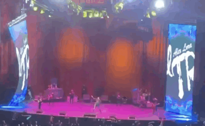 La situación se debió al desprendimiento de una cadena que sostenía una de las pantallas laterales que forman parte de la producción del grupo, lo que ocasionó que dicha pantalla girara sobre su eje hacia el escenario.