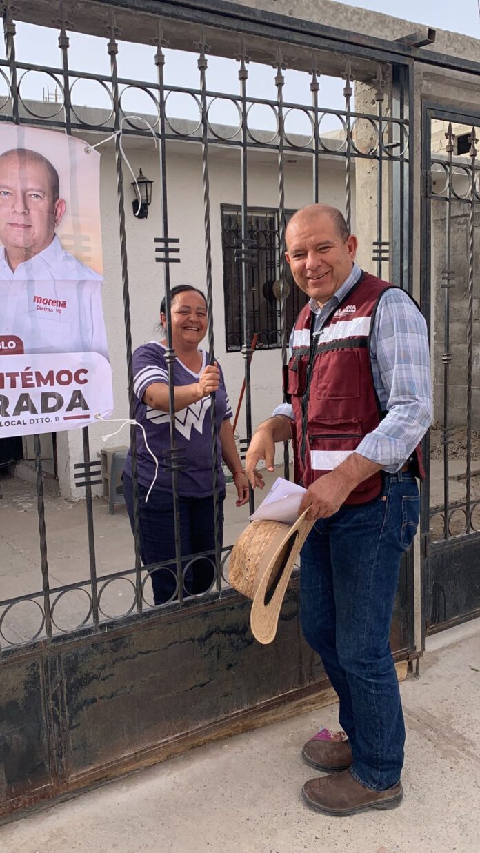 Ciudad Juárez, Chih., a 1 mayo del 2024.- La participación y organización ciudadana es uno de los pilares, no sólo de la democracia, sino del avance social, y eso lo tiene muy claro Cuauhtémoc Estrada Sotelo, candidato de morena para diputado por el Distrito Octavo. El candidato ha trabajado los últimos años, directamente y desde su curul en el Congreso estatal, de la mano de los colonos de diversas zonas de dicho Distrito, para formar parques, mejorarlos, pavimentar calles y luchar por servicios tan básicos como el agua y la luz.