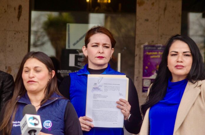 Chihuahua, Chih., a 17 de enero del 2025.- La presidenta del Comité Directivo del PAN, Sarahí Franklyn, denunció ante el Instituto Estatal Electoral (IEE) al regidor morenista Miguel Riggs por violencia política contra las mujeres en razón de género cometida en perjuicio de la síndica municipal, Olivia Franco.