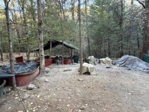 Además de la zona de producción, los agentes localizaron un segundo campamento de aproximadamente 40 metros cuadrados que servía como centro de abastecimiento. En este punto se encontraron condensadores, calderas y un campamento con víveres, lo que confirma que personas pernoctaban y operaban en el sitio durante largas jornadas para mantener la producción activa.