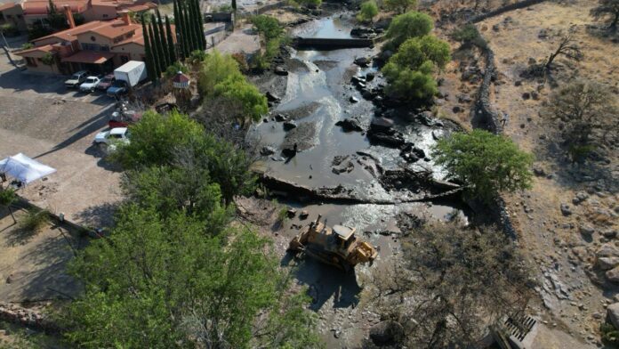 Balleza, Chih., a 12 de junio del 2025.- El Gobierno de México, a través de la Comisión Nacional del Agua (Conagua) destruyó cuatro represas y una presa en el rancho “El Saucito” en el municipio de Balleza propiedad del exgobernador César Horacio Duarte Jáquez recuperando más de 700 millones de metros cúbicos de agua que regresaron al cauce del arroyo el Saucito que conduce las aguas superficiales al río Agujas hasta llegar al río Conchos y en última instancia al río Bravo.
