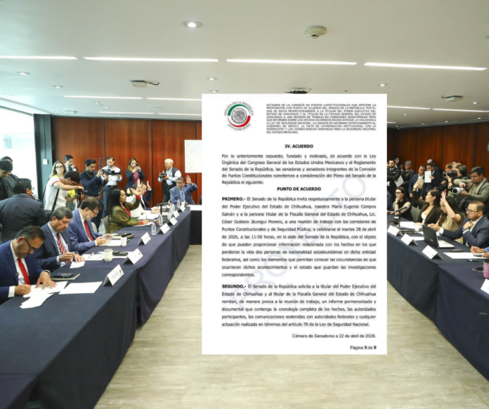 Ciudad de México., a 22 de abril del 2026.- Lo que inició como una serie de contradicciones en la Sierra de Chihuahua ha escalado al máximo nivel legislativo del país. La Comisión de Puntos Constitucionales del Senado de la República aprobó, con 15 votos a favor, un dictamen para citar a comparecer a la gobernadora María Eugenia Campos Galván y al fiscal general, César Jáuregui Moreno, el próximo martes 28 de abril.