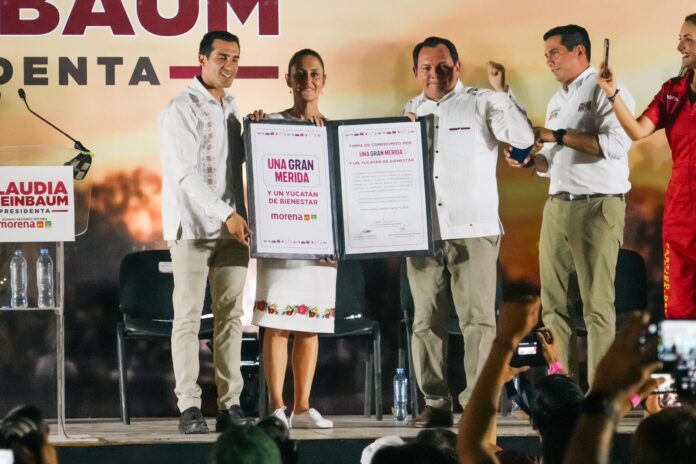 Por otra parte, Claudia Sheinbaum enfatizó en que, de la mano del candidato de la 4T a gobernador del estado, Joaquín “Huacho” Diaz Mena, Yucatán tendrá un nuevo comienzo con la iniciativa ‘’Renacimiento Maya’’, el cual tiene como objetivo el desarrollo de Puerto Progreso; la ampliación del Tren Maya hasta Puerto Progreso, así como su consolidación como un tren de carga; construcción de parques industriales; la entrada de gas natural; impulso de las plantas de ciclo combinado para la generación de electricidad construidas por el Presidente Andrés Manuel López Obrador; construcción del anillo metropolitano para Mérida, entre otras acciones que catapultarán el desarrollo de la entidad.
