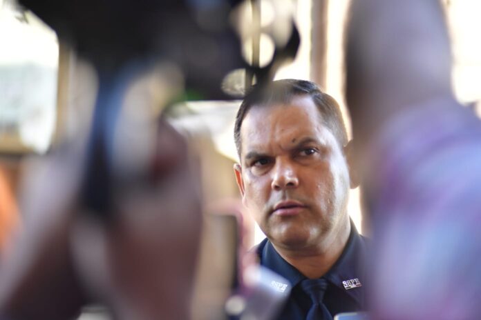 Chihuahua, Chih., a 25 de abril del 2024.- El secretario de Seguridad Pública Estatal (SSPE), Gilberto Loya Chávez informó que es probable que la camioneta de la línea Van encontrada calcinada en el kilometro 86 de la carretera Chihuahua a Ciudad Juárez se encuentre vinculada con la localizados los ocho cuerpos apilados localizados en el entronque Punta de Agua.