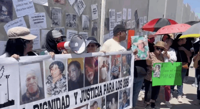 Con pancartas en mano, y fotografías de sus seres queridos es como las familias buscan visibilizar cada una de las historias de vida de esos 386 cuerpos localizados hace un mes en las instalaciones del Crematorio Plenitud localizado en la colonia Granjas Polo Gamboa, a las afueras de Ciudad Juárez.