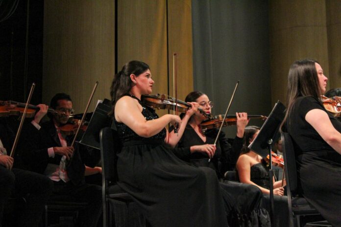 Chihuahua, Chih., a 8 de noviembre del 2025.- La Orquesta Filarmónica del Estado (Ofech), presentó su primer álbum de estudio “Raíces” en el marco del 30 aniversario de su conformación y lo celebró con un concierto para desfrute de las y los chihuahuenses, en el Teatro de los Héroes de la ciudad de Chihuahua.