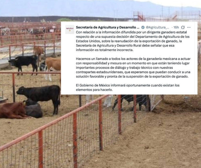 Hasta el momento, la exportación de ganado sigue bajo un proceso de revisión delicado, y el Gobierno de México advirtió que será la única instancia encargada de informar oportunamente cuando existan avances reales.