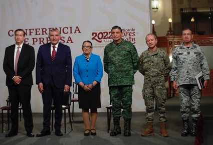 Larga conferencia de prensa en Palacio Nacional para ofrecer la versión oficial de los sucesos de la semana pasada, donde Sandoval González describió la situación en cada una de las entidades afectadas, detallando que en términos generales la estrategia Nacional de Seguridad Pública ha asestado golpes importantes a la capacidad operativa y financiera de los cárteles. En especial, dijo, los decomisos de metanfetaminas y cocaína.