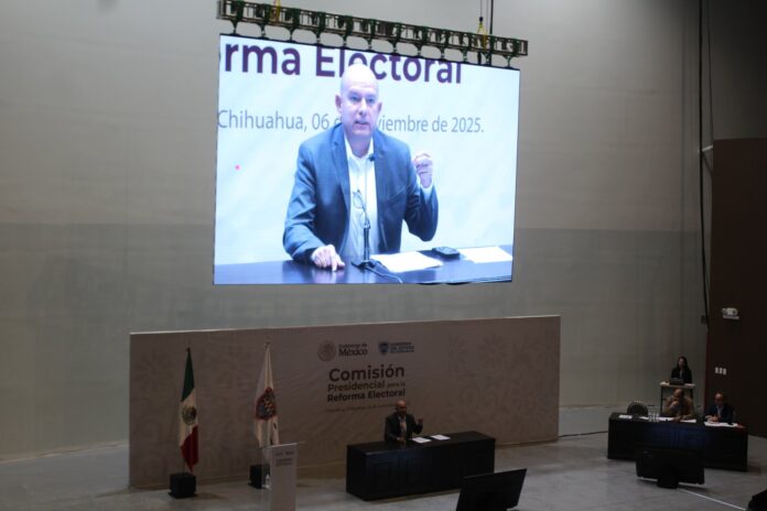 Chihuahua, Chih., a 6 de noviembre del 2025.- Teniendo como marco el Museo Semilla, en la capital del estado, se llevó a cabo la Audiencia Pública de la Comisión Presidencial para la Reforma Electoral en Chihuahua, en ella el diputado coordinador de la bancada de morena en el Congreso del Estado, Cuauhtémoc Estrada Sotelo, presentó propuestas para fortalecer la legitimidad y representatividad de los órganos legislativos y municipales.