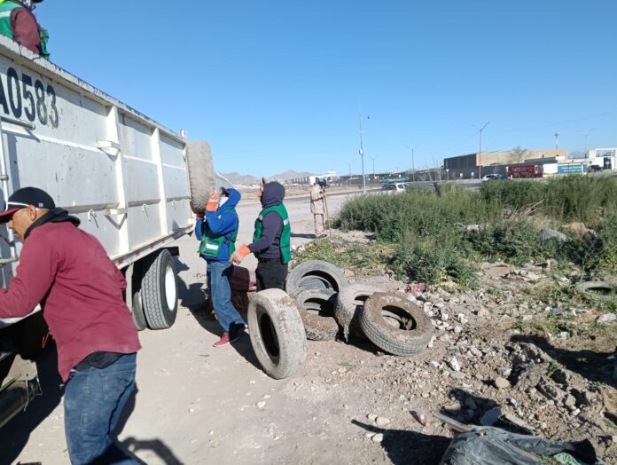 Ciudad Juárez, Chih., a 22 de febrero del 2026.- Como parte de un programa intensivo de reordenamiento urbano, la Dirección de Limpia llevó a cabo una jornada de saneamiento en el fraccionamiento Villa Residencial del Real, logrando retirar un acumulado crítico de desechos, escombro y neumáticos que afectaban la zona.