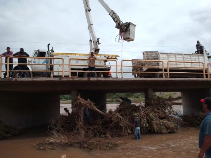 Chihuahua, Chih., a 2 de septiembre del 2022.- La Dirección de Mantenimiento Urbano, retiró cinco árboles arrastrados por la fuerte corriente del arroyo El Fresno en el Ejido Chuvíscar, los cuales, por sus grandes dimensiones obstruían el libre paso del agua.