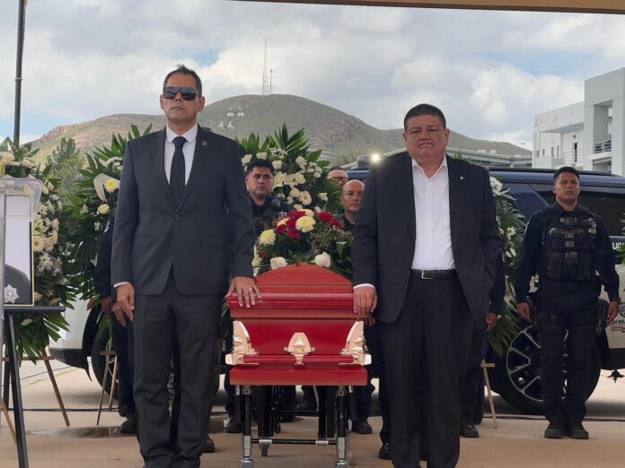 Chihuahua, Chih., a 9 de octubre del 2025.- En medio de un ambiente de tristeza y dolor, familiares, amigos y compañeros se congregaron en la explanada del C4 de la Ciudad de Chihuahua para rendir un homenaje postumo y recordar a los tres suboficiales Ana Esmeralda Arteaga Arroyo de 28 años, Germán Peralta Hernández 42, y Guillermo Aguirre Palma de 31 años quienes que perdieron la vida en un ataque armado perpetrado por un grupo criminal en las inmediaciones del municipio serrano de Moris.