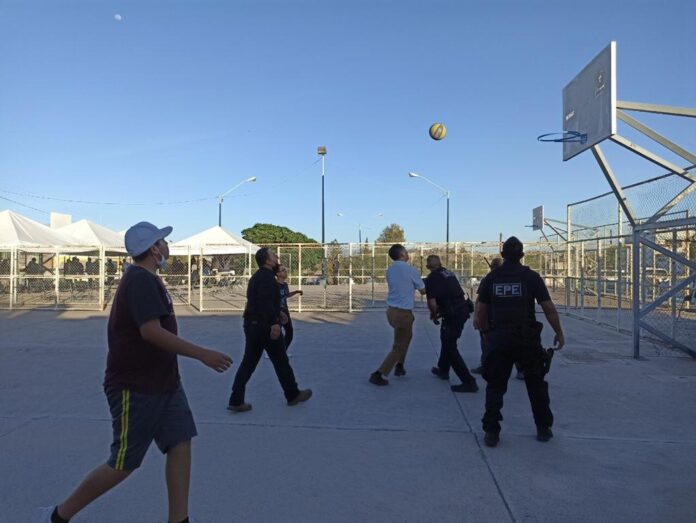 Chihuahua, Chih., a 15 de abril del 2022.- El reto fue tajante y directo; el comisario de policía Julio Cesar Salas González y algunos elementos de grupos especiales voltearon a verse buscando la aprobación y la respuesta no se hizo esperar: ¡le entramos!; todo ocurrió la tarde del miércoles en el parque conocido como “La Burrita, donde se llevaba a cabo el operativo 24 Horas en tu Barrio.