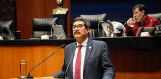 Chihuahua, Chih., a 15 de abril del 2025.- En el pleno de la Cámara Alta, los senadores chihuahuenses, Javier Corral Jurado (Morena)...