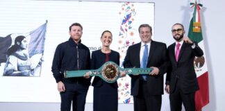 Aparece ‘El Canelo’ Álvarez en la ‘mañanera’ de Sheinbaum