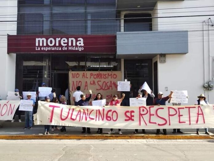Molestos por la posible imposición de Salvador Sosa Arroyo, sobrino de Gerardo Sosa Castelán, líder del llamado Grupo Universidad, como candidato a la presidencia municipal de Tulancingo, cerca de medio centenar de militantes de Morena de ese municipio se manifestaron en las afueras del Comité Ejecutivo Estatal de ese instituto político, en el centro histórico de la capital hidalguense.