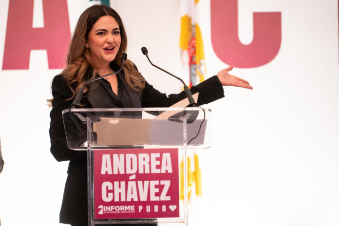 Chihuahua, Chih., a 25 de noviembre del 2023.- La diputada federal por Chihuahua, Andrea Chávez expresó durante su 2do Informe de actividades parlamentarias que seguirá trabajando todos los días para que todas las mujeres en nuestro país vivan libres y seguras.