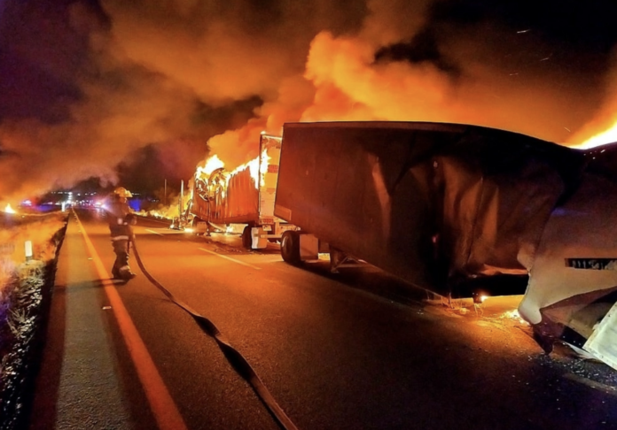 Zacatecas, Zac., a 6 de mayo del 2024.- Zacatecas fue escenario de distintos hechos de violencia entre la tarde y noche de este domingo, en que se produjeron dos enfrentamientos armados entre policías estatales y presuntos integrantes de la delincuencia organizada, así como el despojo y quema de por lo menos una decena de camiones y automóviles particulares, en puntos carreteros de cinco municipios ubicados al sureste de la capital del estado.